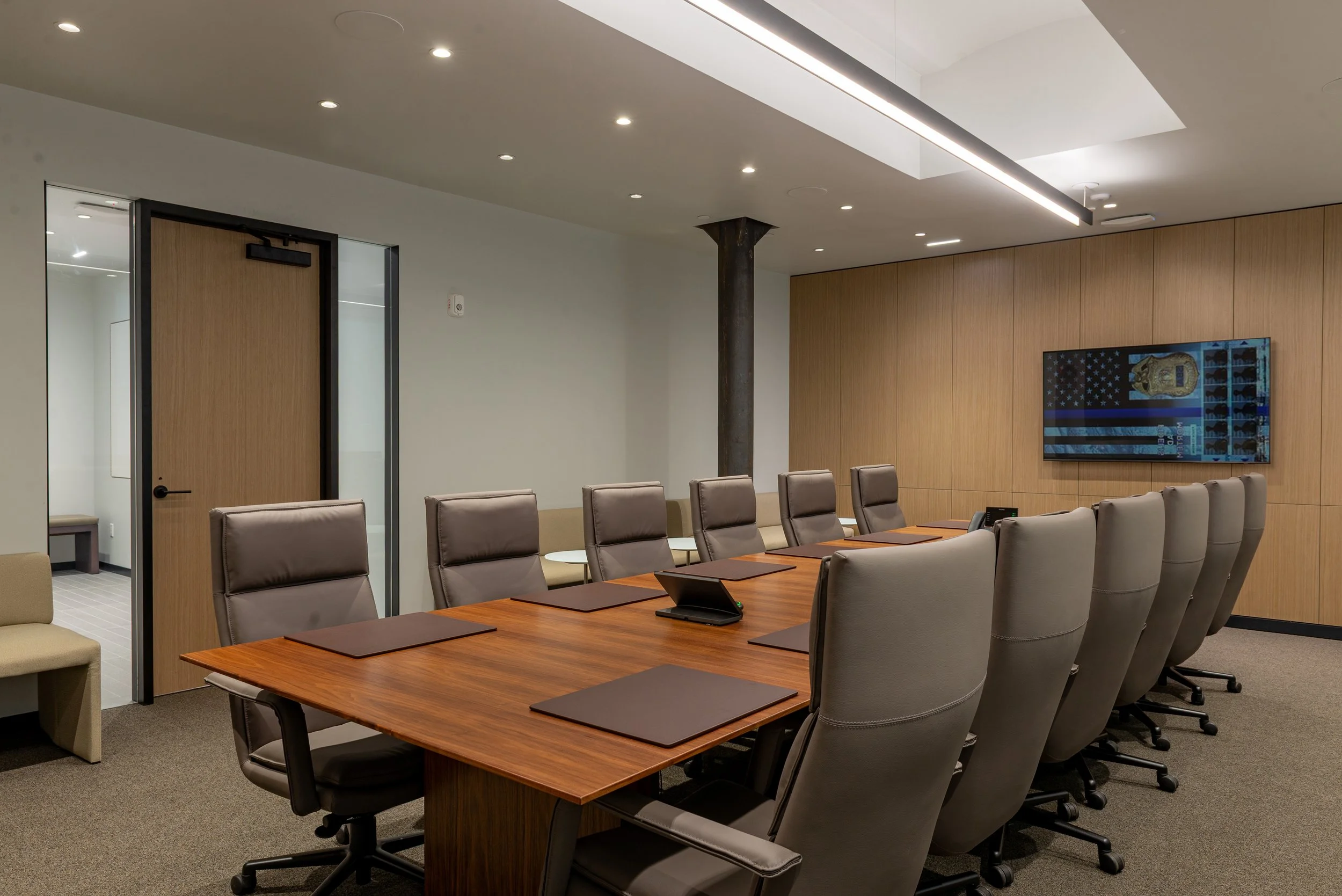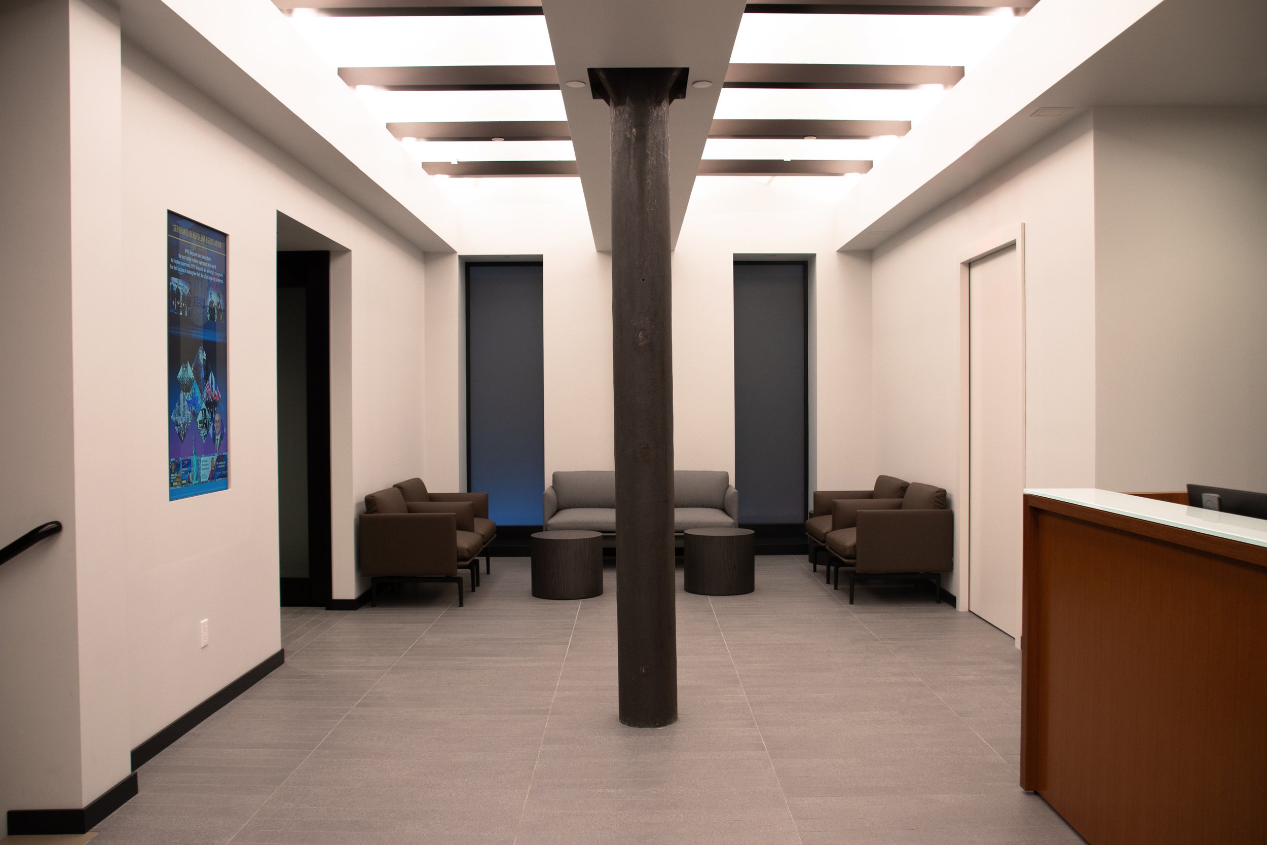 “The Street” symbolizes the interface between the SBA and the community. The materiality of the street includes cobblestone-like pavers, the original cast-iron columns and original vaulted ceilings exposed in all the main spaces. The street is animated further by the “billboards”, interactive digital displays, that describe the mission of the SBA and memorialize the members. The familiar but dignified materials provide a sense of safety, assurance and permanence. The design of the interiors reflects the SBA’s ethos, mission and contemporary culture.